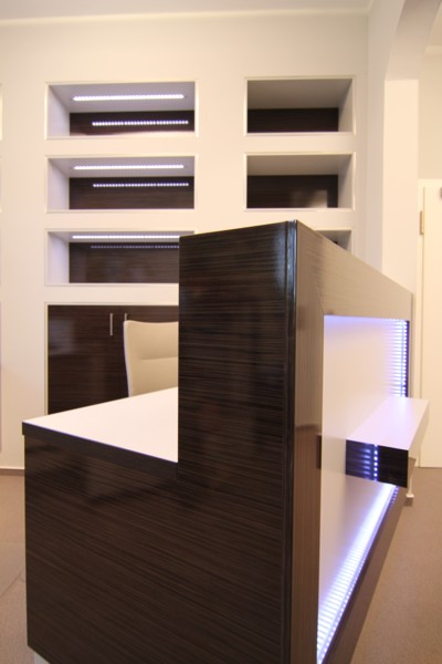 Neugestaltung der vorhandenen Praxisräume in moderner großzügiger Optik.