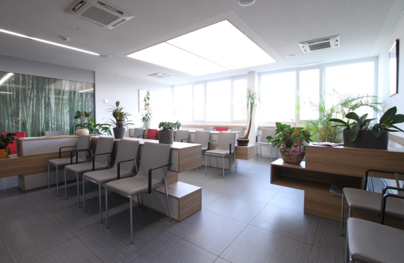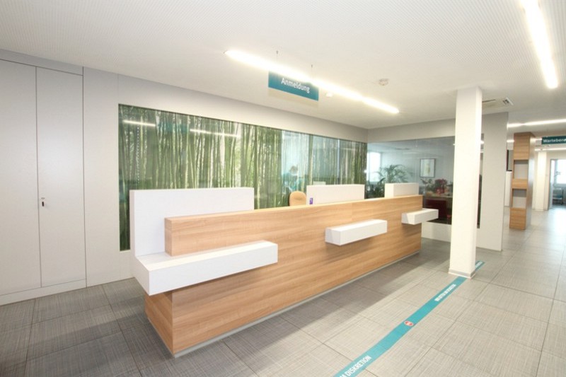 Die durchgängige Innenraumgestaltung des Gebäudes von den Praxiseinrichtungen des MVZ bis hin zur Einrichtung der Apotheke vermittelt auch architektonisch die komplexe Patientenbetreung der einzelnen medizinischen Leistungsanbieter.
